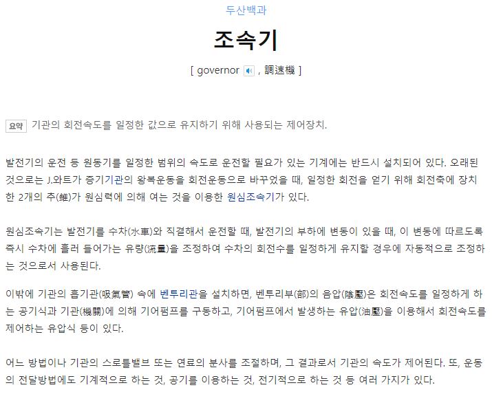 위의 161번처럼 기계적인 장치의 조속기뿐만아니라 전기적인 상호작용으로 속도를 제어하는 전자조속기또한 존재합니다.